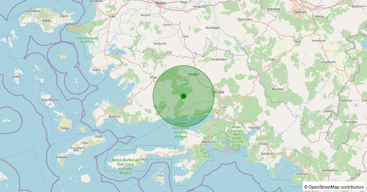 Son 7 gün içinde Yatağan - Çukuröz noktasından 100 km yarıçap içerisinde meydana gelen diğer depremler: