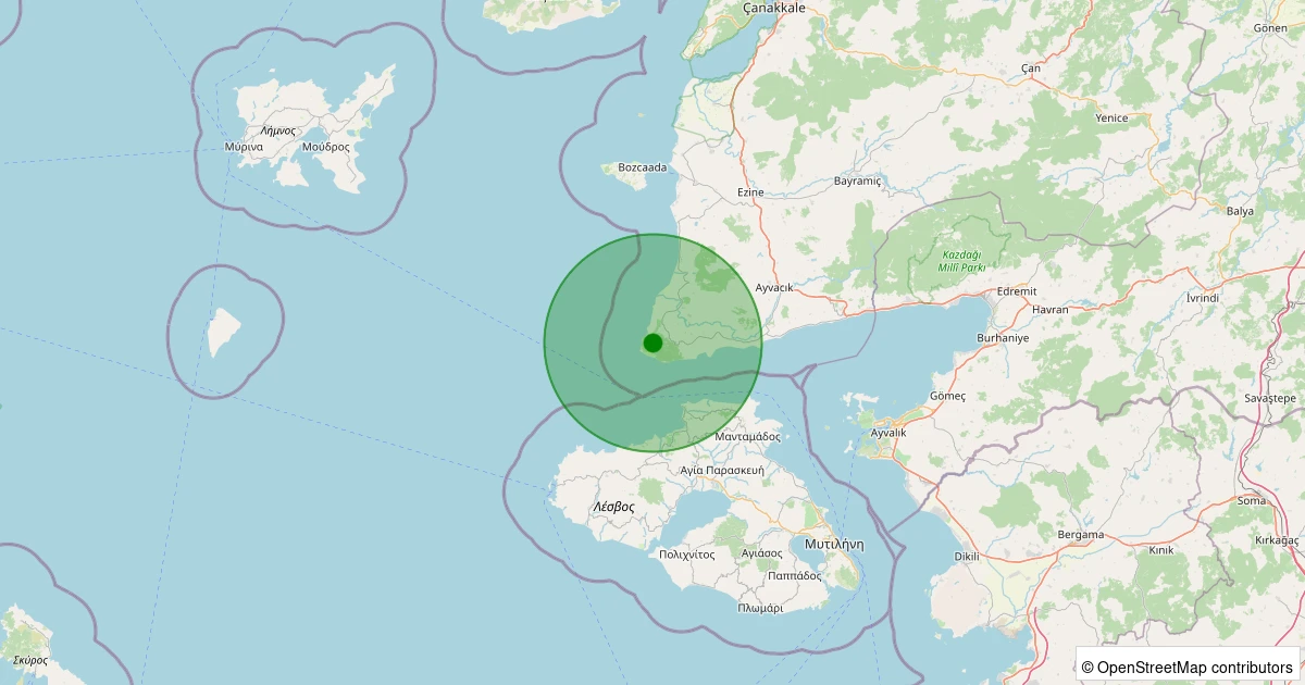 Son 7 gün içinde Ayvacık - Babakale Köyü noktasından 100 km yarıçap içerisinde meydana gelen diğer depremler: