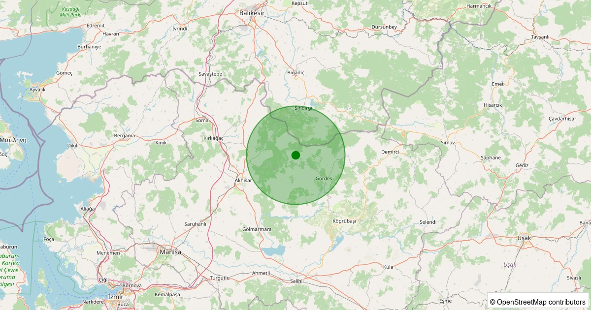 Son 7 gün içinde Akhisar - Hanpaşa Köyü noktasından 100 km yarıçap içerisinde meydana gelen diğer depremler: