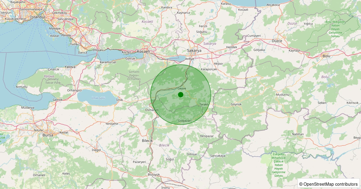 Son 7 gün içinde Geyve - Umurbey noktasından 100 km yarıçap içerisinde meydana gelen diğer depremler: