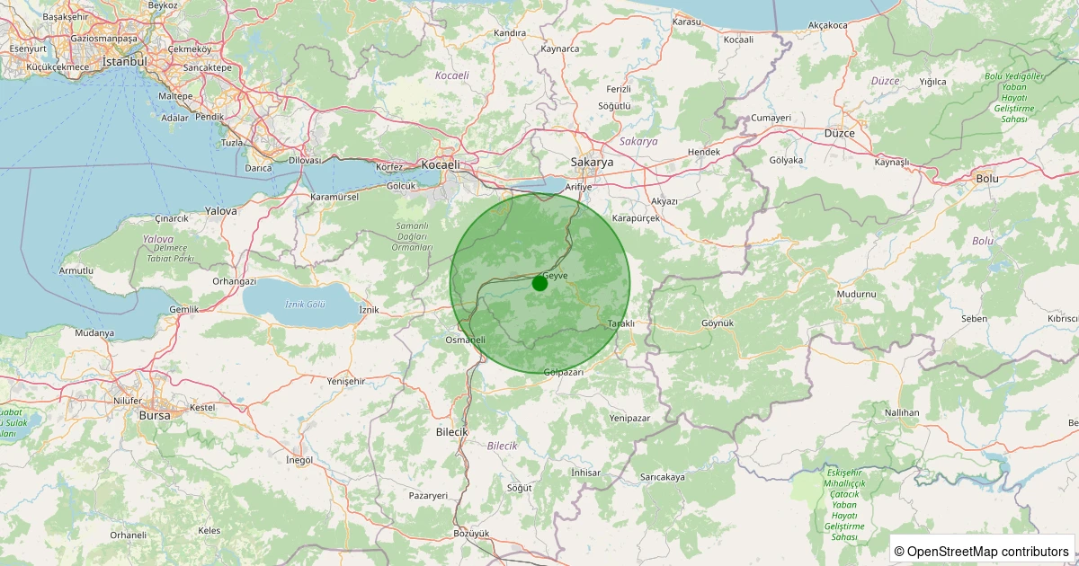 Son 7 gün içinde Geyve - Safibey noktasından 100 km yarıçap içerisinde meydana gelen diğer depremler: