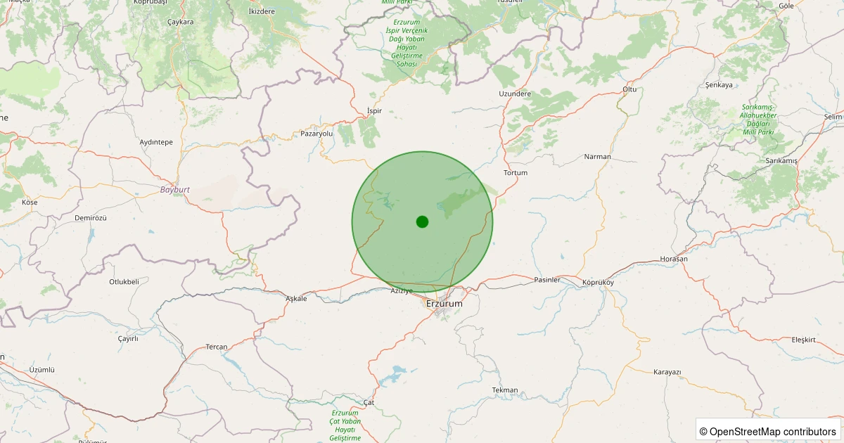 Son 7 gün içinde Yakutiye - Arıbahçe noktasından 100 km yarıçap içerisinde meydana gelen diğer depremler: