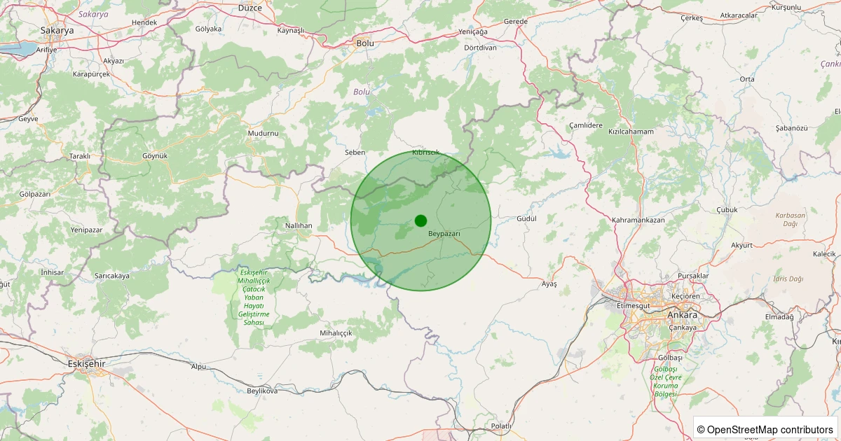 Son 7 gün içinde Beypazarı - Sarıağıl noktasından 100 km yarıçap içerisinde meydana gelen diğer depremler: