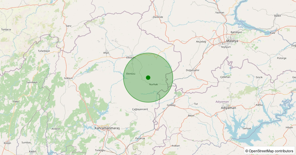 EMSC üzerinden alınan ölçümlere göre Nurhak - Ağcaşar Köyü bölgesinde 13.02.2026 05:04 tarihinde gece saatlerinde 1.9 büyüklüğünde bir deprem meydana geldi.