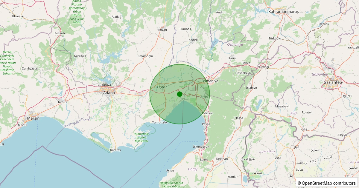 Son 7 gün içinde Ceyhan - Sarımazı noktasından 100 km yarıçap içerisinde meydana gelen diğer depremler:
