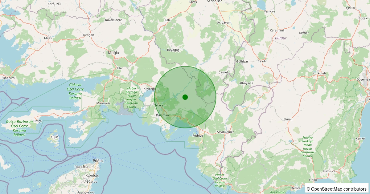 Son 7 gün içinde Dalaman - Taşbaşı noktasından 100 km yarıçap içerisinde meydana gelen diğer depremler: