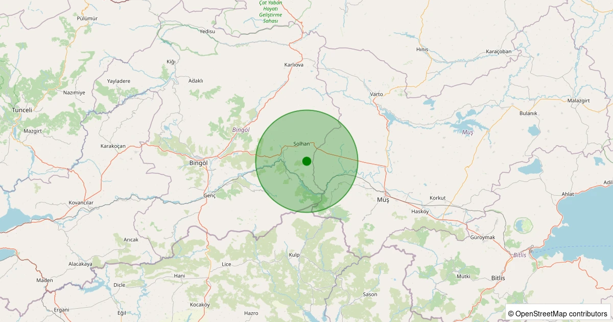 Son 7 gün içinde Solhan - Eşmetaş Köyü noktasından 100 km yarıçap içerisinde meydana gelen diğer depremler: