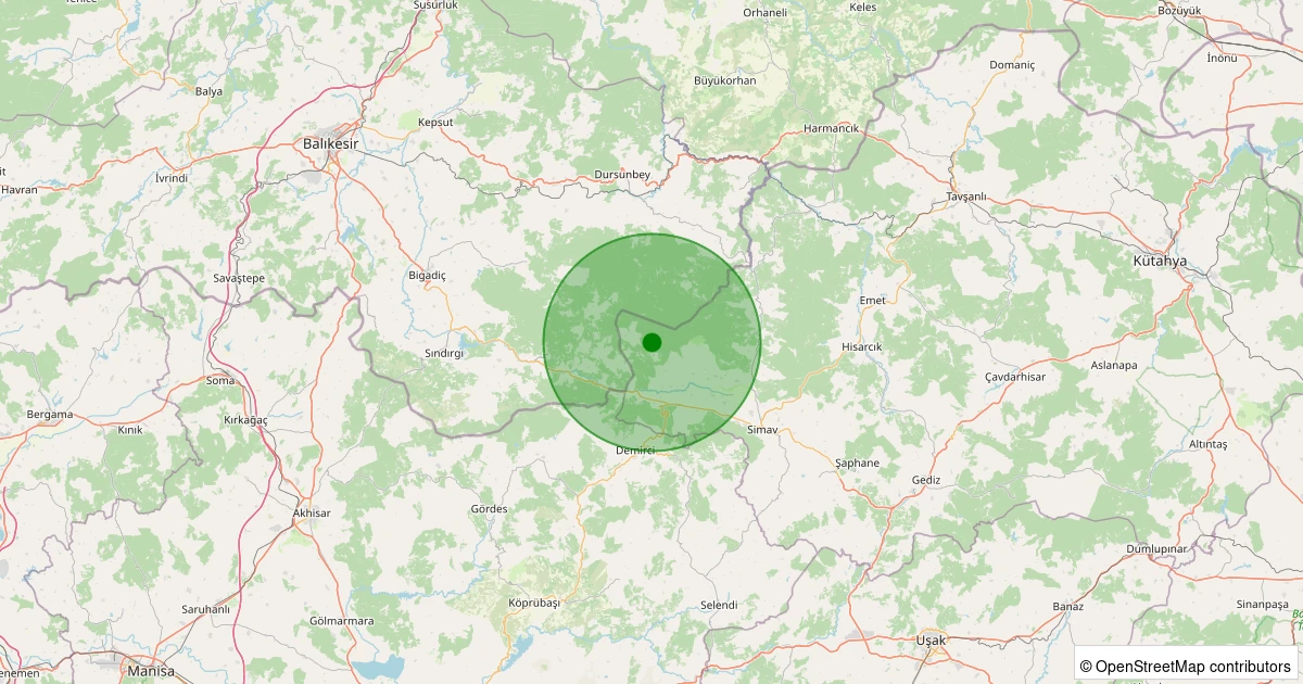 Son 7 gün içinde Simav - Kiçir Köyü noktasından 100 km yarıçap içerisinde meydana gelen diğer depremler: