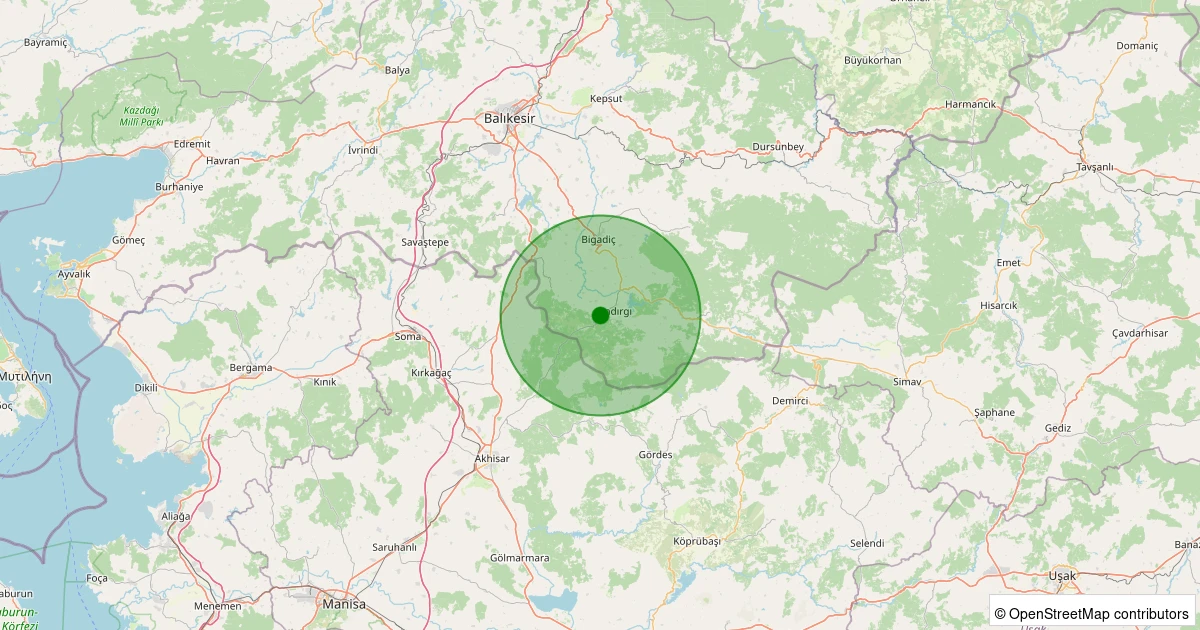 Son 7 gün içinde Sındırgı - Mandıra noktasından 100 km yarıçap içerisinde meydana gelen diğer depremler: