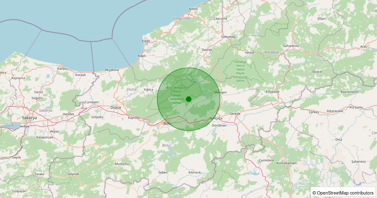 Son 7 gün içinde Mengen noktasından 100 km yarıçap içerisinde meydana gelen diğer depremler: