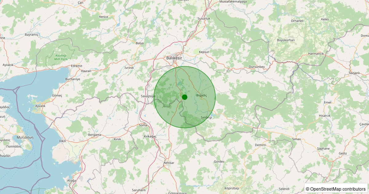 Son 7 gün içinde Bigadiç - Çayüstü noktasından 100 km yarıçap içerisinde meydana gelen diğer depremler: