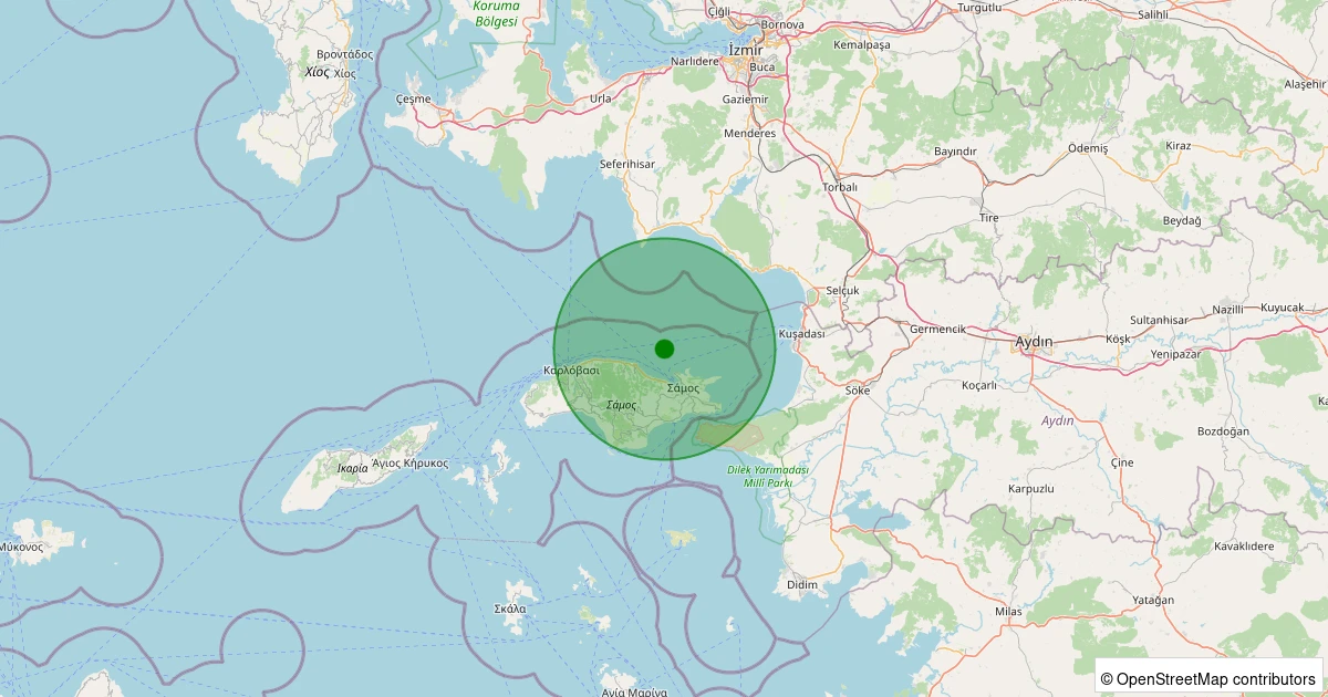 Son 7 gün içinde KUSADASI noktasından 100 km yarıçap içerisinde meydana gelen diğer depremler: