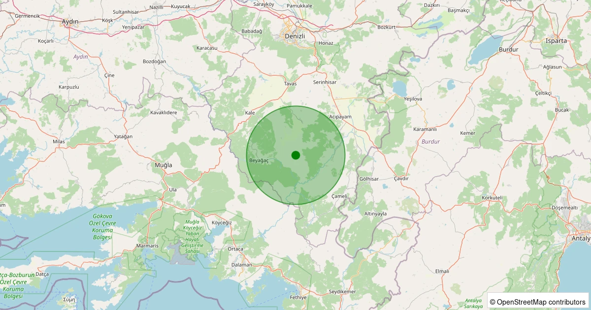Son 7 gün içinde Tavas - Derinkuyu noktasından 100 km yarıçap içerisinde meydana gelen diğer depremler: