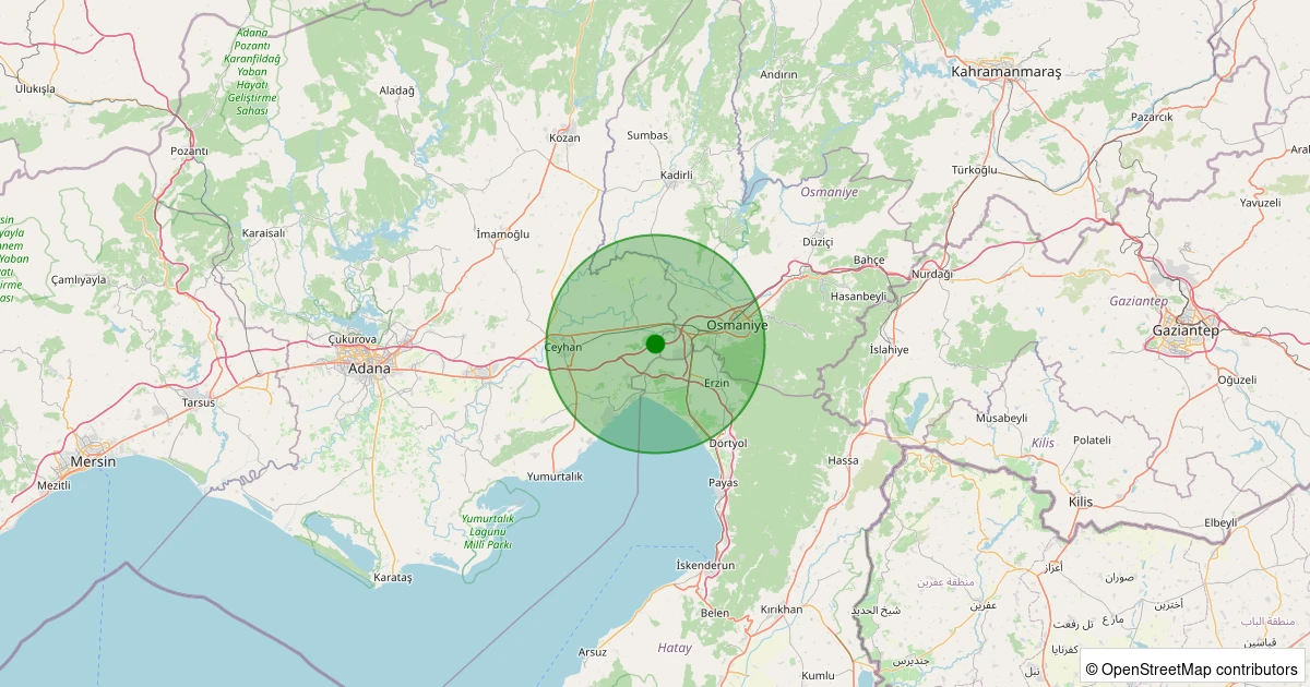 Son 7 gün içinde Ceyhan - Dutlupınar noktasından 100 km yarıçap içerisinde meydana gelen diğer depremler: