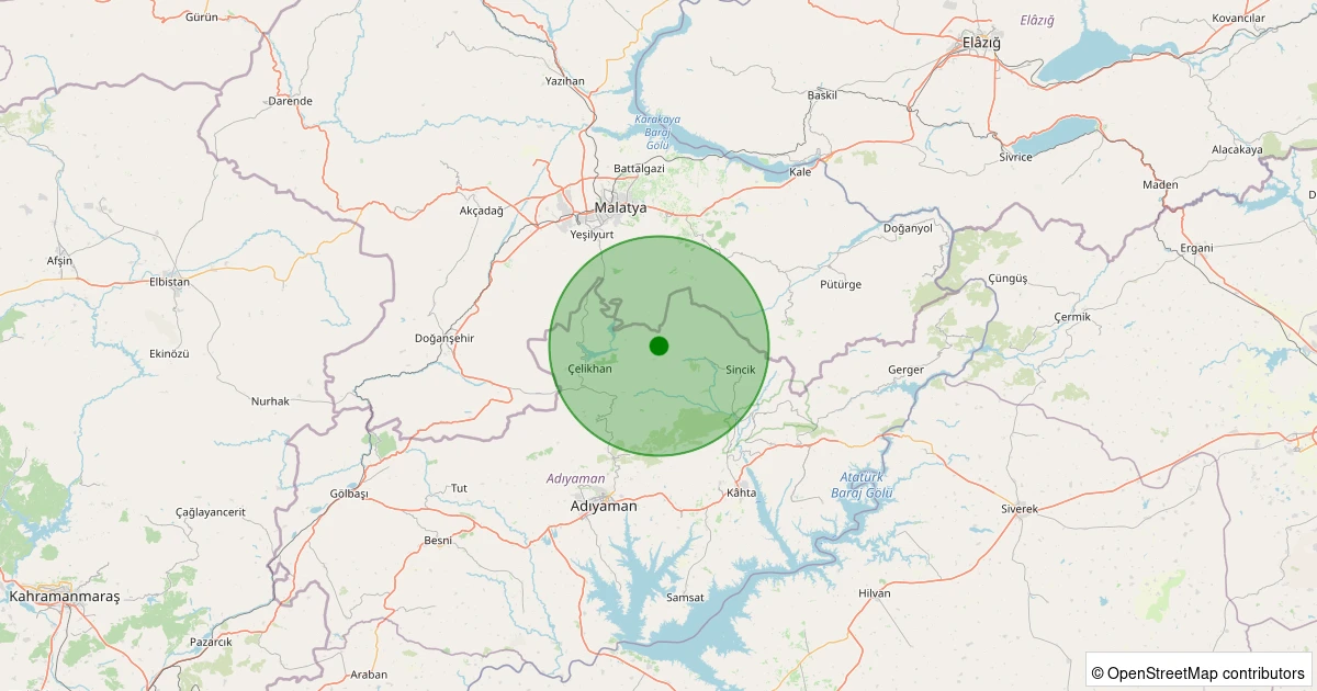 Son 7 gün içinde Çelikhan - Karagöl Köyü noktasından 100 km yarıçap içerisinde meydana gelen diğer depremler: