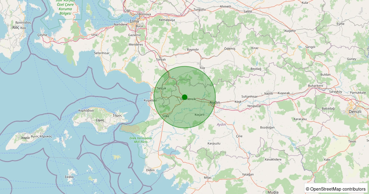 Son 7 gün içinde Germencik - Hıdırbeyli noktasından 100 km yarıçap içerisinde meydana gelen diğer depremler: