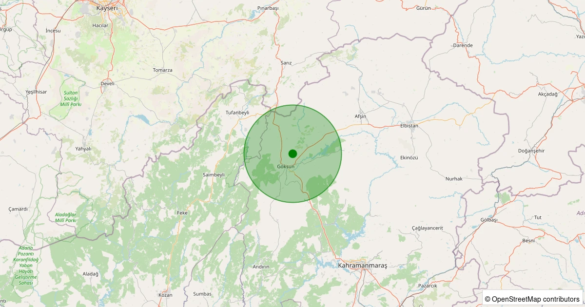 Son 7 gün içinde Göksun noktasından 100 km yarıçap içerisinde meydana gelen diğer depremler: