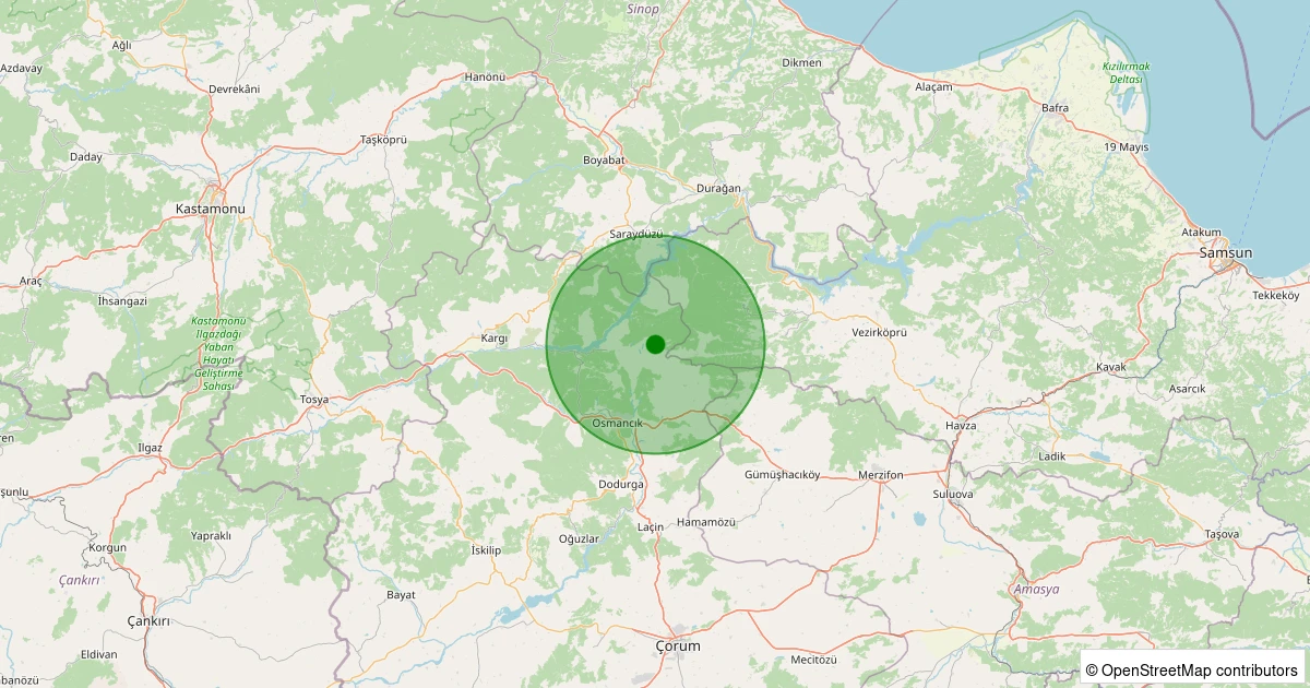 Son 7 gün içinde Osmancık - Karalar Güney Köyü noktasından 100 km yarıçap içerisinde meydana gelen diğer depremler: