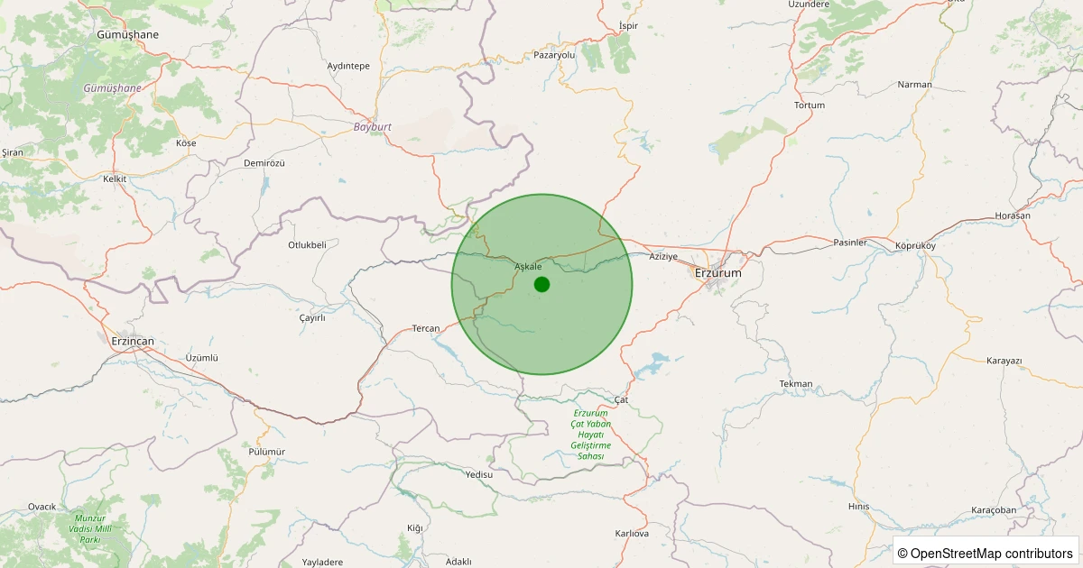 Son 7 gün içinde Aşkale - Güllüdere noktasından 100 km yarıçap içerisinde meydana gelen diğer depremler: