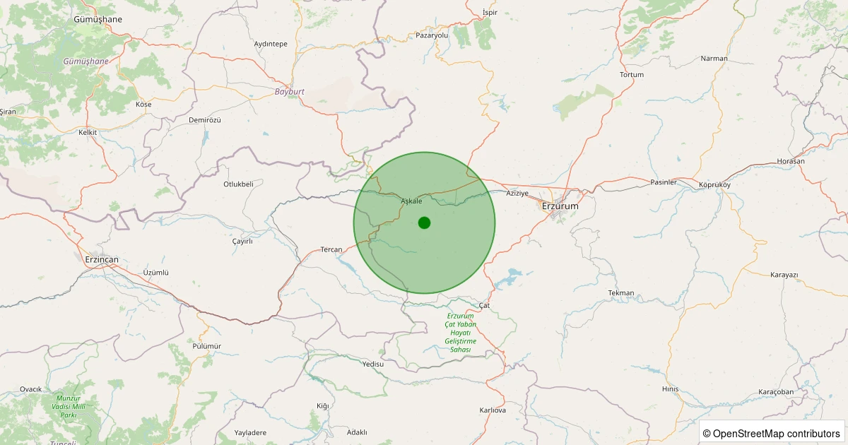 Son 7 gün içinde Aşkale - Güllüdere noktasından 100 km yarıçap içerisinde meydana gelen diğer depremler: