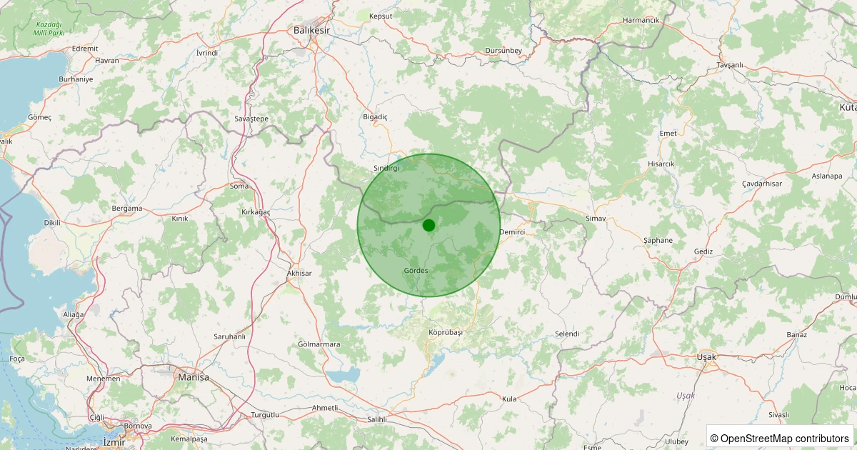 Son 7 gün içinde Gördes - Şeyhyayla noktasından 100 km yarıçap içerisinde meydana gelen diğer depremler: