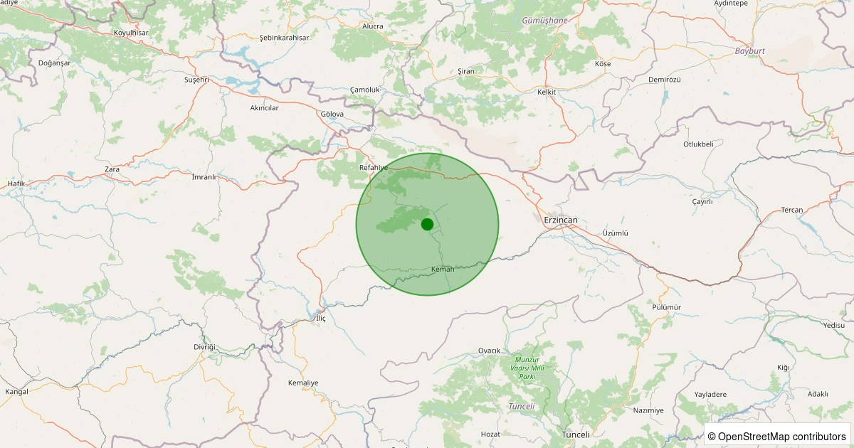 Son 7 gün içinde Kemah - Dedeoğlu Köyü noktasından 100 km yarıçap içerisinde meydana gelen diğer depremler: