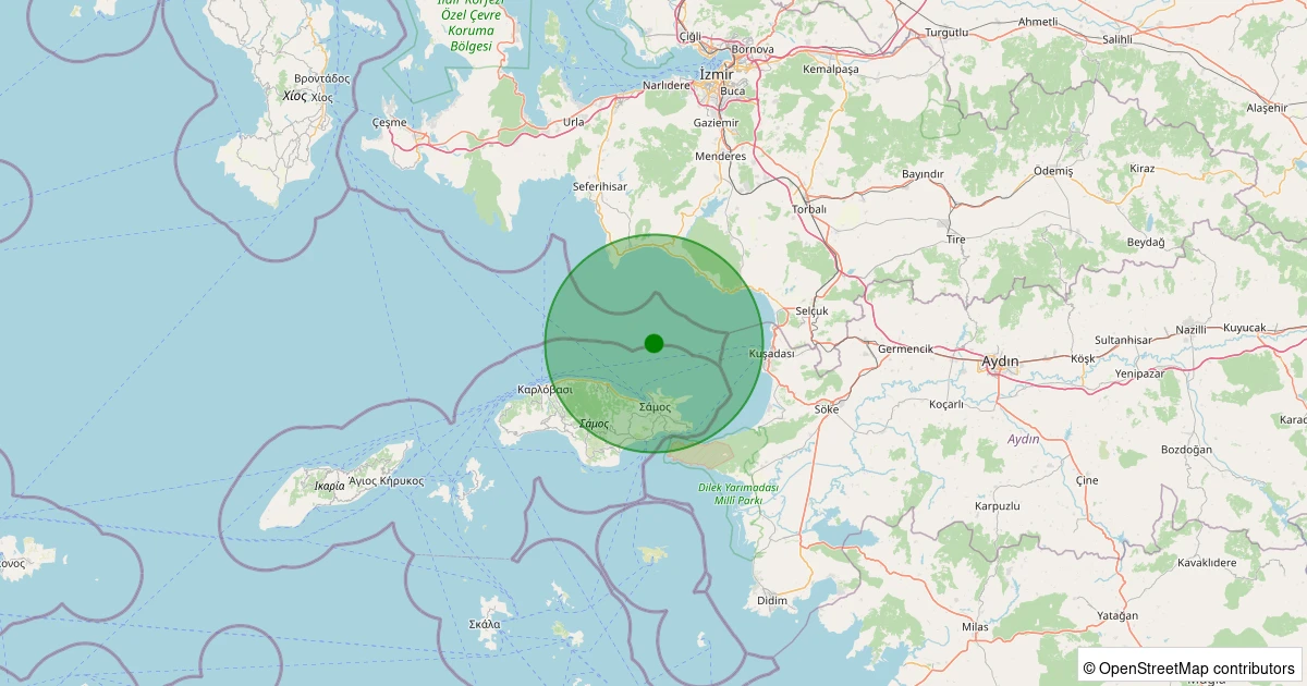 Son 7 gün içinde Ege Denizi - Kuşadası Körfezi - [18.91 km] Menderes (İzmir) noktasından 100 km yarıçap içerisinde meydana gelen diğer depremler: