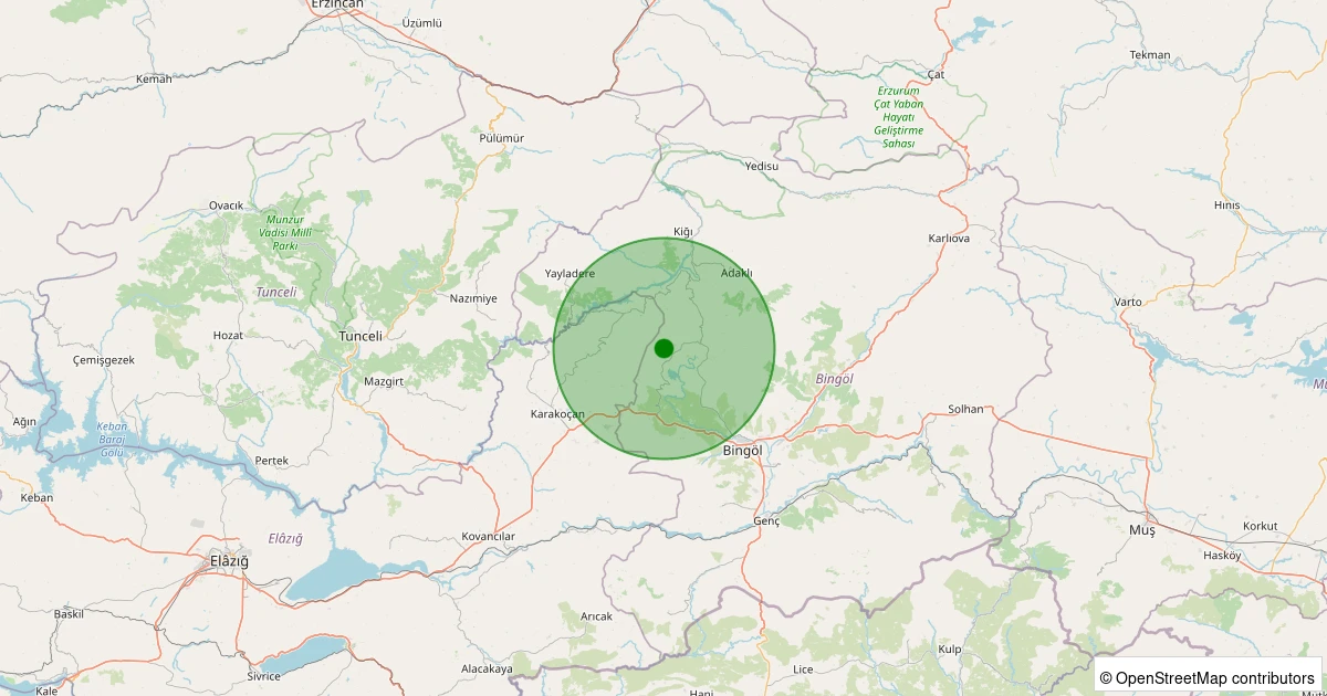 Son bir hafta içerisinde Bingöl şehri Merkez noktasından 100 km yarıçap içerisinde toplamda 49 deprem kaydedilmiştir. Bu depremlerden en büyüğü 2.5 büyüklüğünde ve en sığ odaklısı 2.90 kilometre derinlikte gerçekleşmiştir.