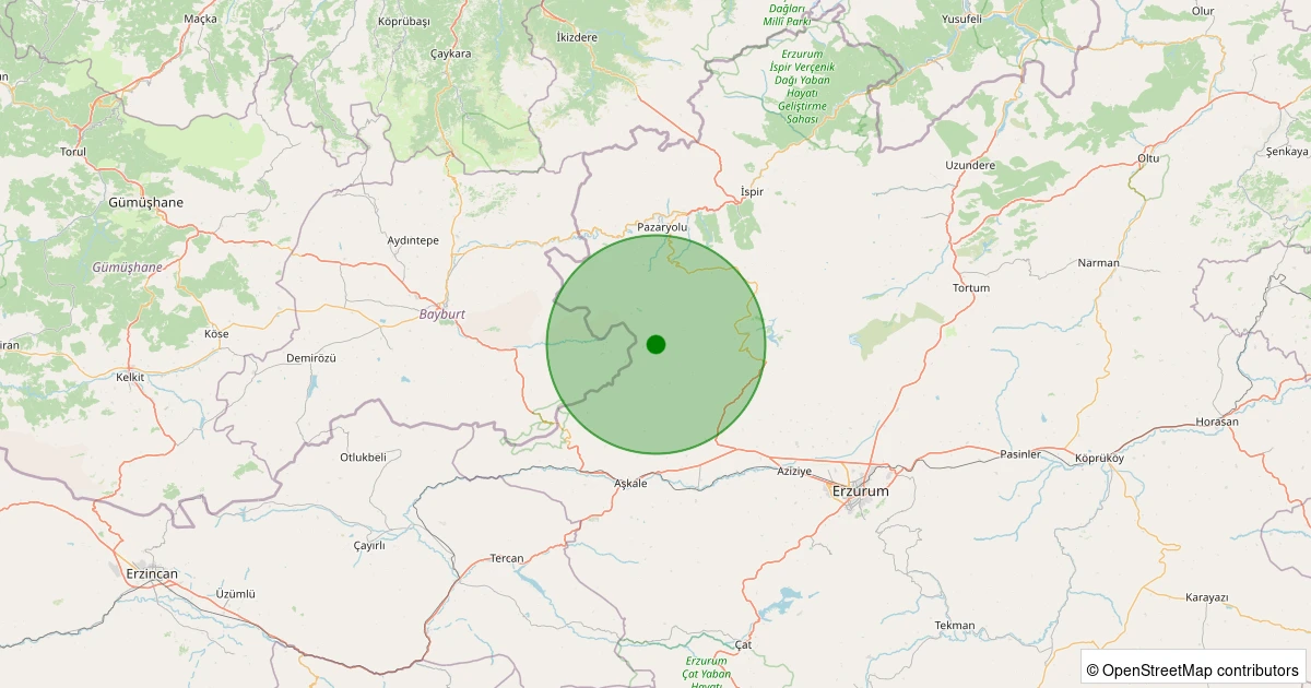 Son 7 gün içinde Aziziye - Ovacık Söğütlü noktasından 100 km yarıçap içerisinde meydana gelen diğer depremler: