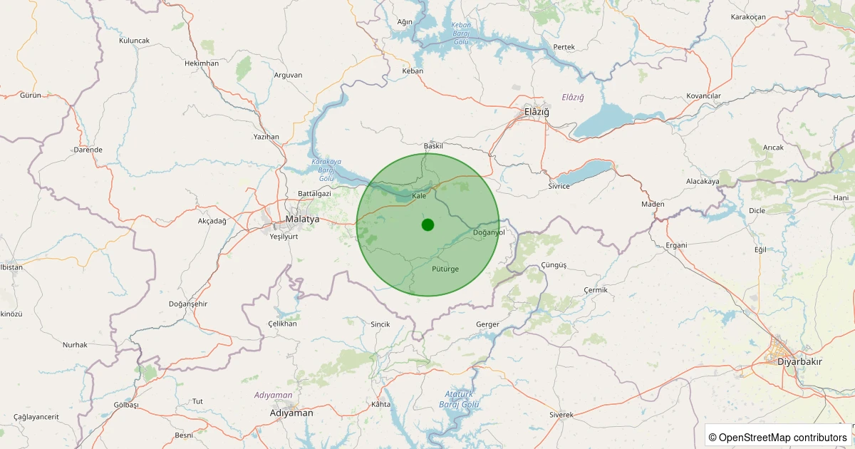 Son 7 gün içinde Pütürge - Bölükkaya Köyü noktasından 100 km yarıçap içerisinde meydana gelen diğer depremler: