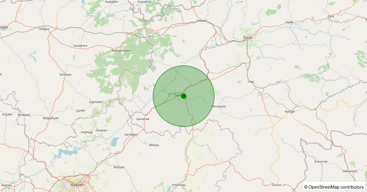 Son 7 gün içinde Şarkışla - Gültekin noktasından 100 km yarıçap içerisinde meydana gelen diğer depremler: