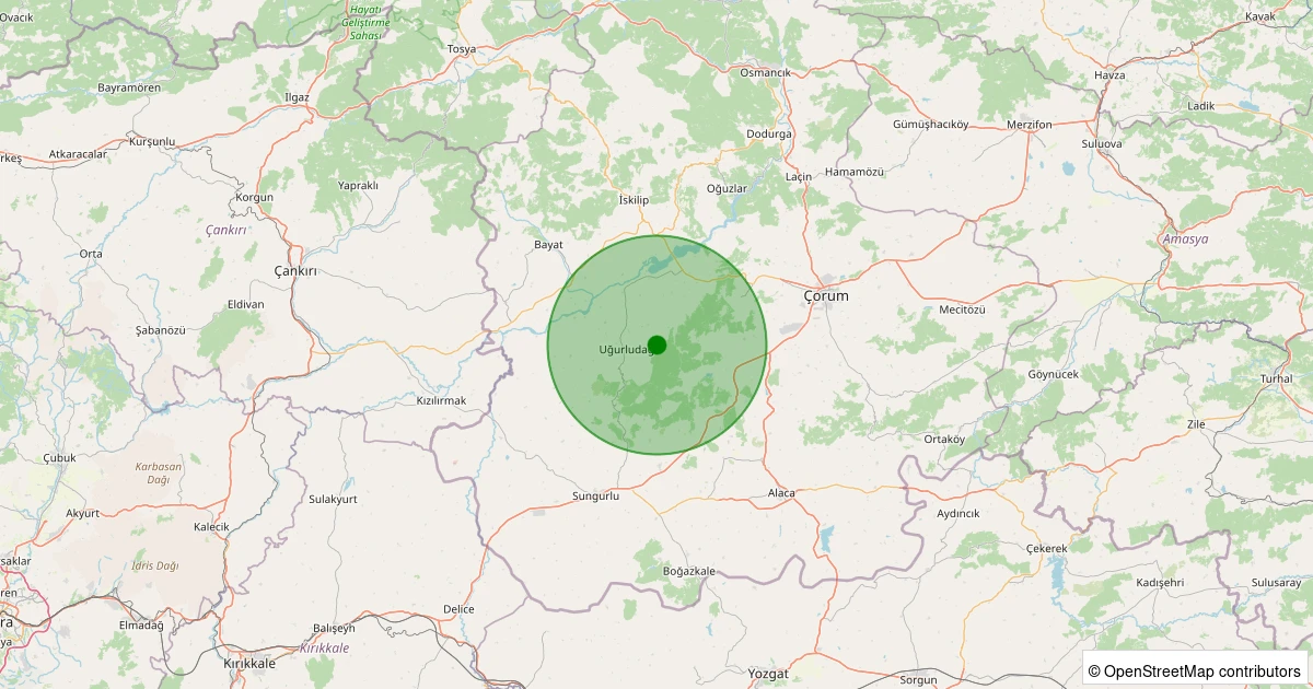 Son bir hafta içerisinde Çorum şehri Uğurludağ - Sazköy Köyü noktasından 100 km yarıçap içerisinde toplamda 34 deprem kaydedilmiştir. Bu depremlerden en büyüğü 4.1 büyüklüğünde ve en sığ odaklısı 5.36 kilometre derinlikte gerçekleşmiştir.