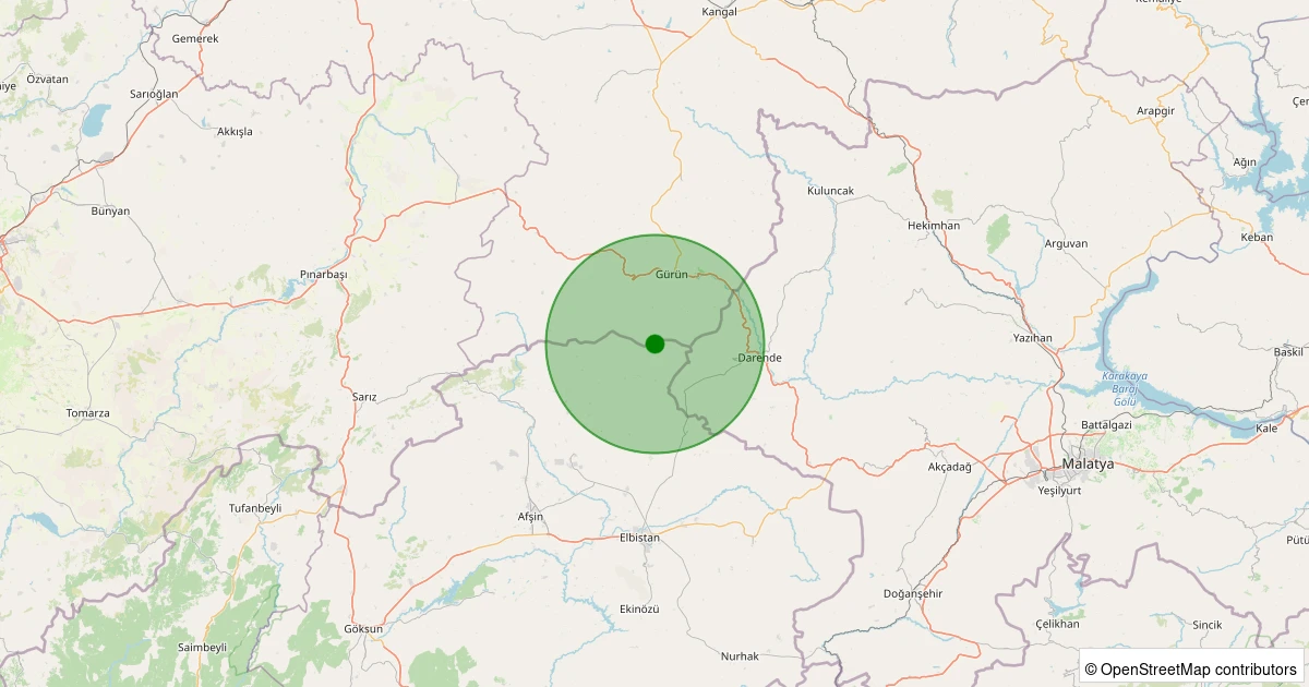 Son 7 gün içinde Elbistan - Keçemağra Köyü noktasından 100 km yarıçap içerisinde meydana gelen diğer depremler: