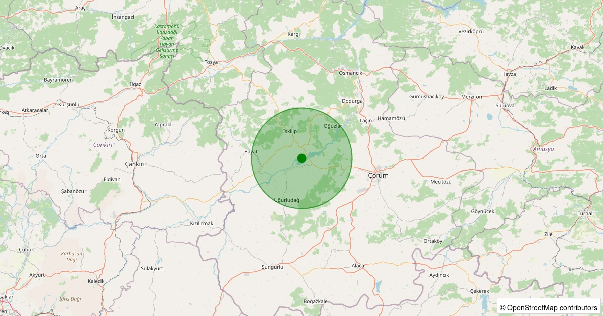 Son 7 gün içinde İskilip - Karlık Köyü noktasından 100 km yarıçap içerisinde meydana gelen diğer depremler: