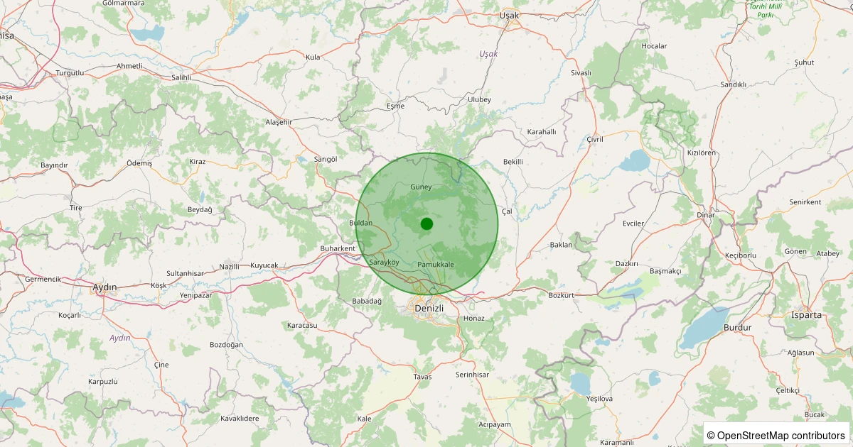 Son 7 gün içinde Pamukkale - Belenardıç Köyü noktasından 100 km yarıçap içerisinde meydana gelen diğer depremler: