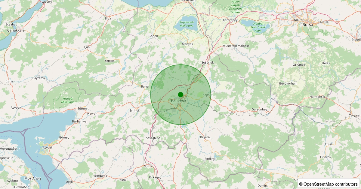 Son 7 gün içinde Karesi - Üçpınar noktasından 100 km yarıçap içerisinde meydana gelen diğer depremler: