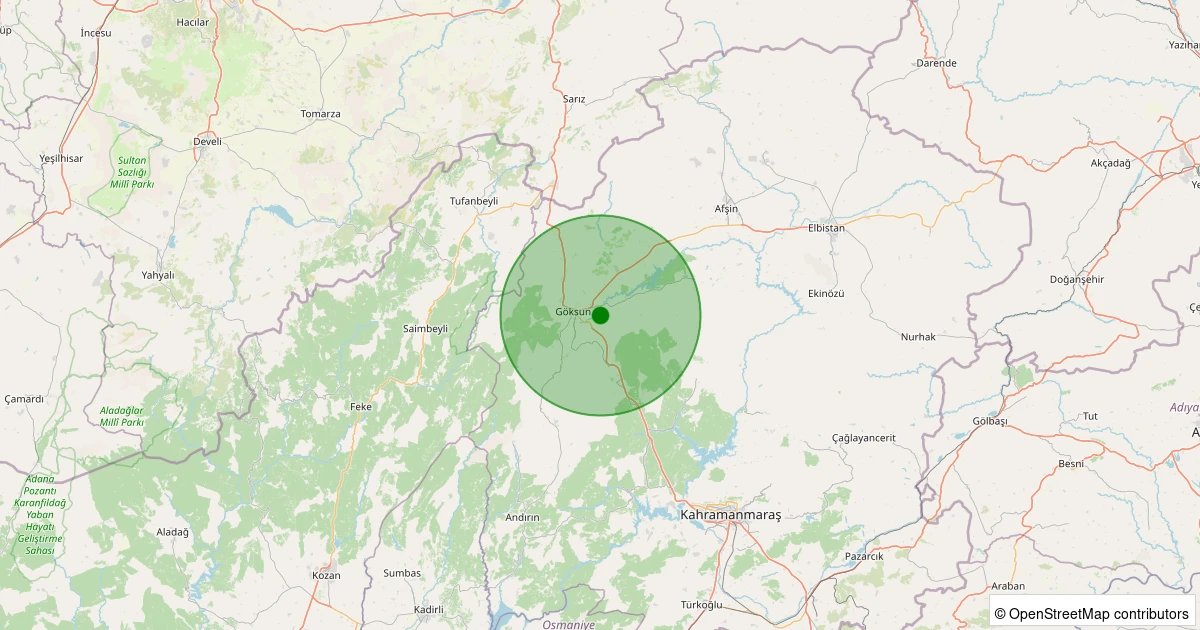 Son 7 gün içinde Göksun noktasından 100 km yarıçap içerisinde meydana gelen diğer depremler: