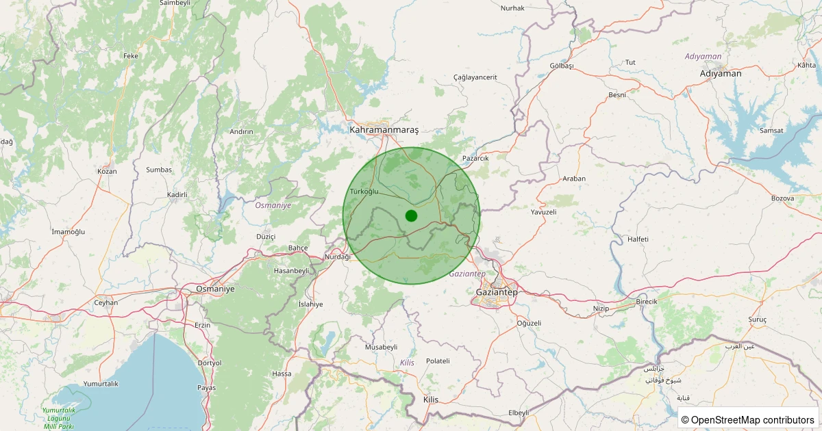 Son 7 gün içinde Kahramanmaraş noktasından 100 km yarıçap içerisinde meydana gelen diğer depremler: