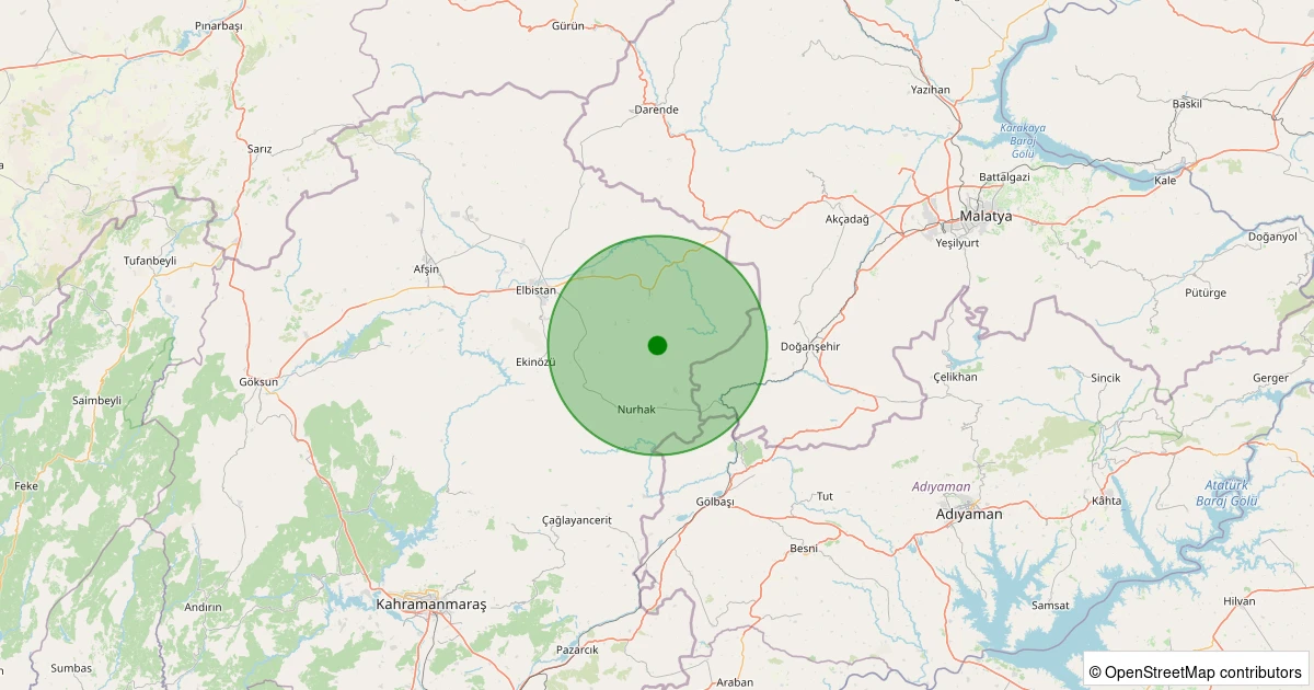 Son 7 gün içinde Elbistan - Sünnet Köyü noktasından 100 km yarıçap içerisinde meydana gelen diğer depremler: