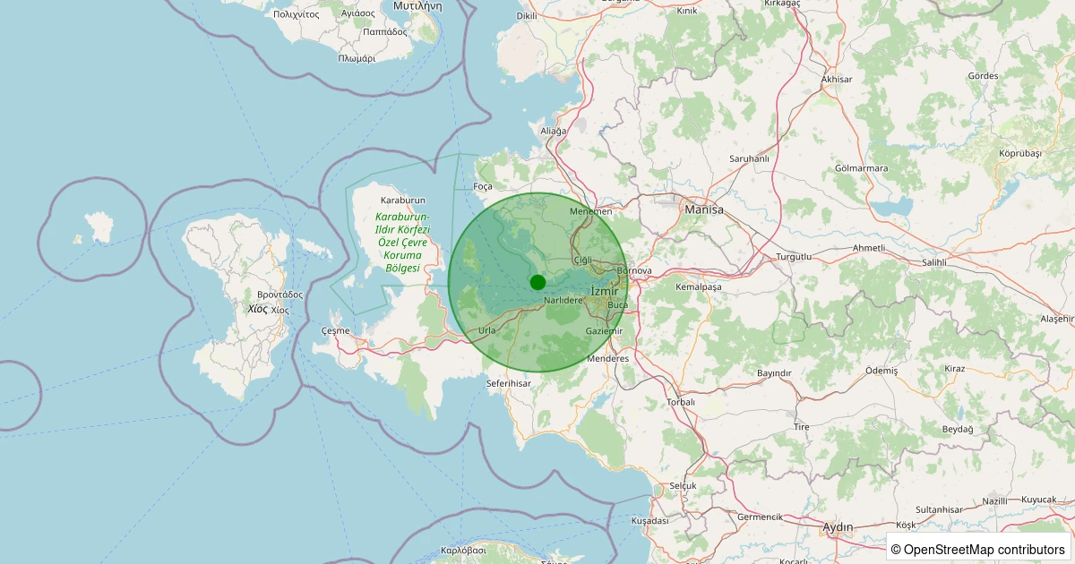 Son bir hafta içerisinde IZMIR noktasından 100 km yarıçap içerisinde toplamda 64 deprem kaydedilmiştir. Bu depremlerden en büyüğü 2.8 büyüklüğünde ve en sığ odaklısı 1.00 kilometre derinlikte gerçekleşmiştir.