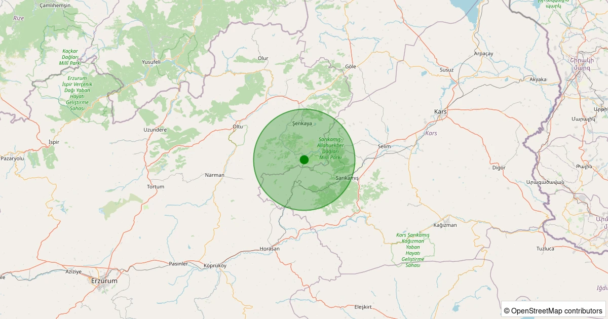 Son 7 gün içinde Şenkaya - Çatalelma noktasından 100 km yarıçap içerisinde meydana gelen diğer depremler: