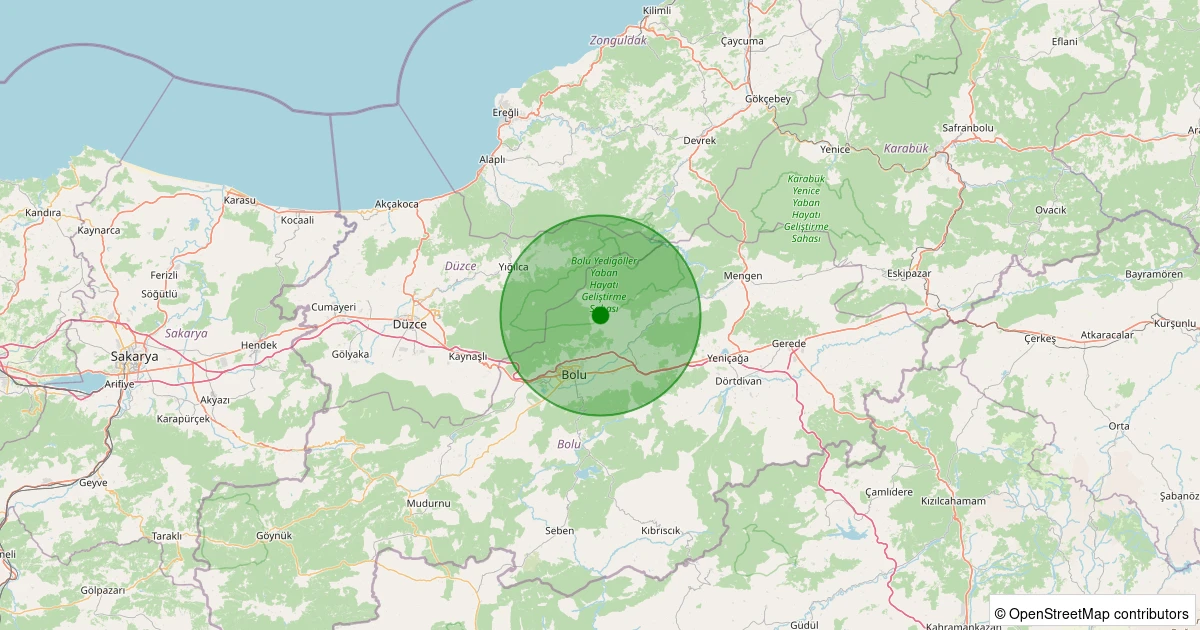 Son bir hafta içerisinde Bolu şehri Merkez noktasından 100 km yarıçap içerisinde toplamda 42 deprem kaydedilmiştir. Bu depremlerden en büyüğü 2.4 büyüklüğünde ve en sığ odaklısı 3.40 kilometre derinlikte gerçekleşmiştir.