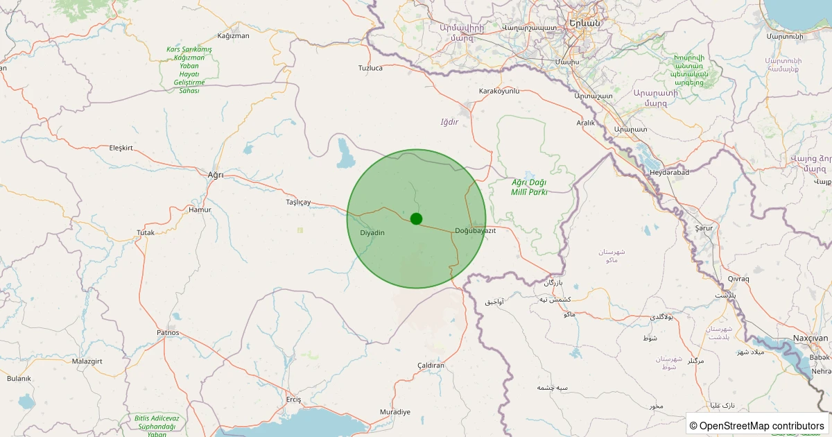 Son 7 gün içinde Doğubayazıt - Üçmurat Köyü noktasından 100 km yarıçap içerisinde meydana gelen diğer depremler:
