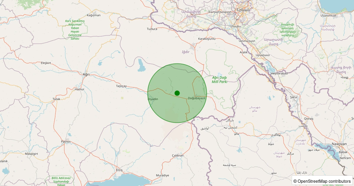 Son 7 gün içinde Doğubayazıt - Üçgöze Köyü noktasından 100 km yarıçap içerisinde meydana gelen diğer depremler: