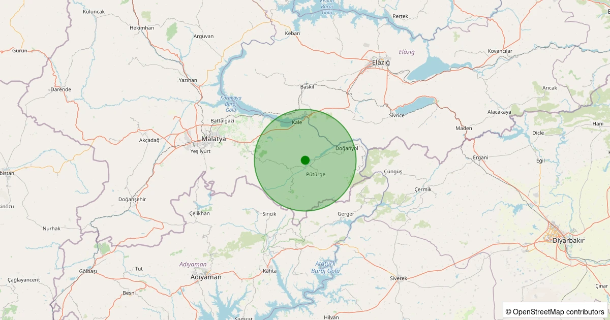 Son 7 gün içinde Pütürge - Aktarla Köyü noktasından 100 km yarıçap içerisinde meydana gelen diğer depremler: