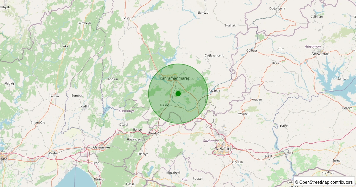 Son 7 gün içinde Dulkadiroğlu noktasından 100 km yarıçap içerisinde meydana gelen diğer depremler: