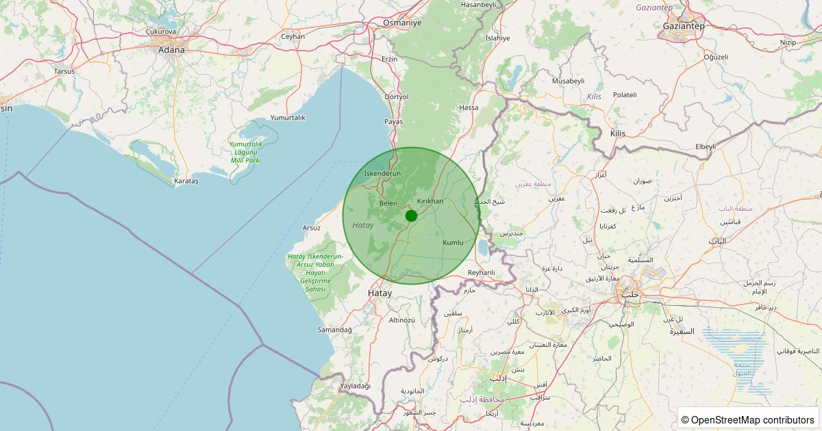 Son 7 gün içinde Belen noktasından 100 km yarıçap içerisinde meydana gelen diğer depremler: