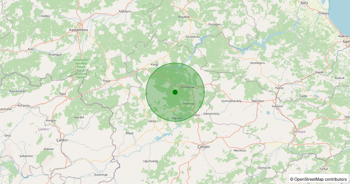 Son 7 gün içinde Osmancık - Sarpunkavak Köyü noktasından 100 km yarıçap içerisinde meydana gelen diğer depremler: