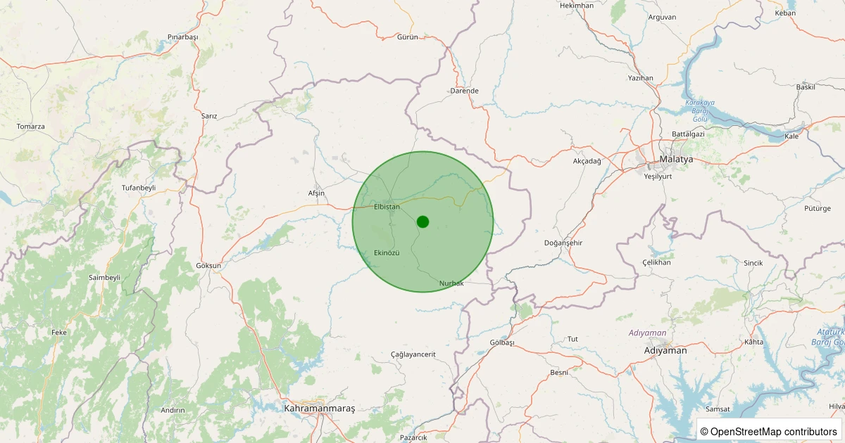 Son 7 gün içinde Elbistan - Akbayır/Osmangazi noktasından 100 km yarıçap içerisinde meydana gelen diğer depremler: