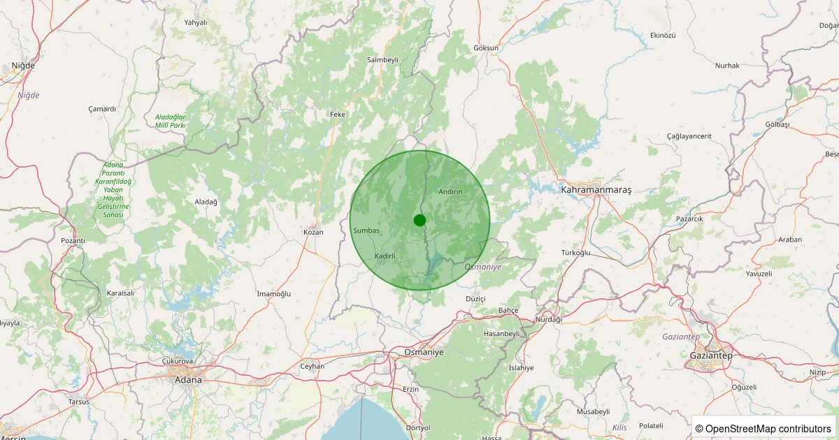 Son 7 gün içinde Andırın - Arıklar Köyü noktasından 100 km yarıçap içerisinde meydana gelen diğer depremler: